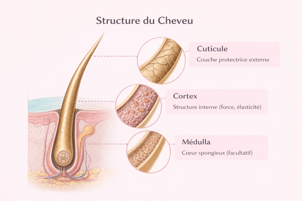 Avant de choisir les bons soins, il est essentiel de comprendre comment le cheveu est construit et quels éléments influencent réellement sa qualité et sa résistance.